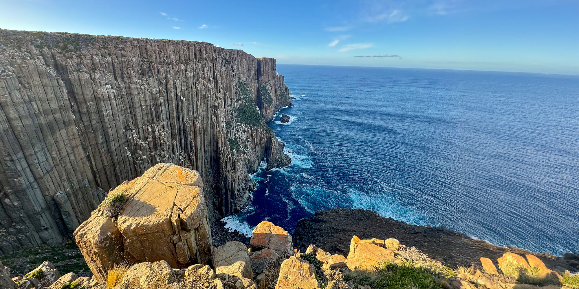 One morning, you’re sipping a latte in an industrial-chic Hobart café. An few hours later, you’re boulder hopping up the dolerite of kunanyi / Mount Wellington with the city a world away below. The next day, you’re deep in the mossy rainforest hidden on the Tasman Peninsula. Then, you’re running along the edge of the world, staring 300m down vertical sea cliffs to the Southern Ocean below Cape Raoul.