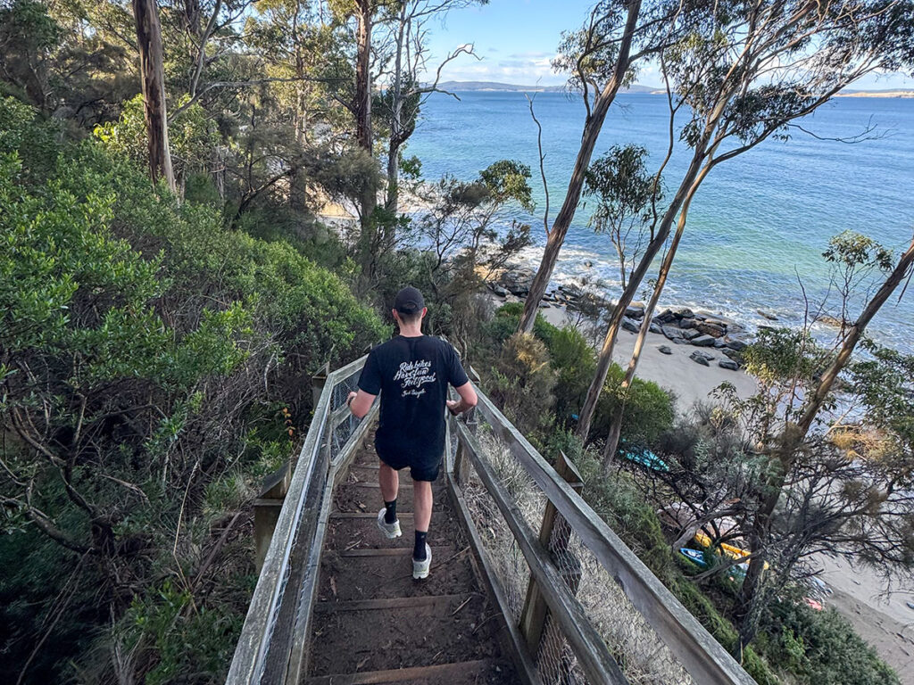 Your journey begins on the stunning coastal trails of Kingston, just south of Hobart. A world of ocean views, native bushland, and runnable trails to ease you into the adventure before returning to the city for the night.
